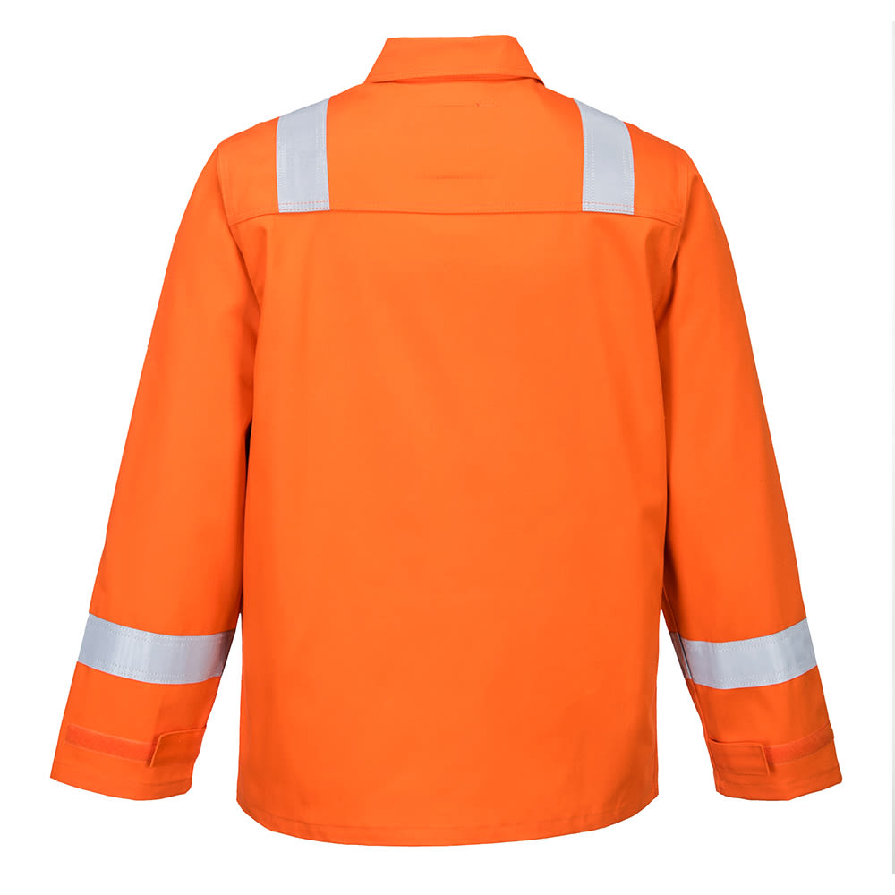 Aceasta jacheta este confectionata cu benzi reflectorizante Hi-Vis cu cusaturi duble pentru durabilitate sporita. Caracteristicile includ cusaturi triple tighelite, benzi Hi-Vis pe umeri si brate, fermoar alama ascuns, doua buzunare frontale pe piept cu clapa si inchidere stud. Maneci cu deschidere reglabile.