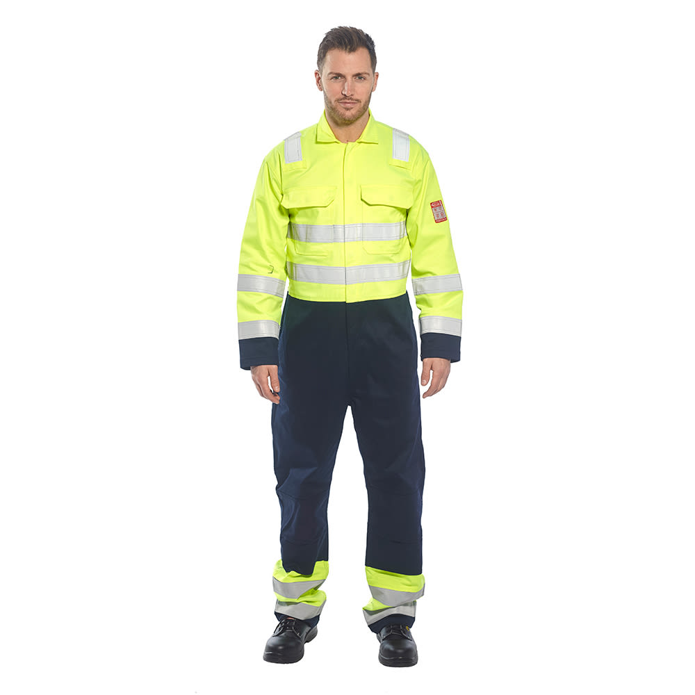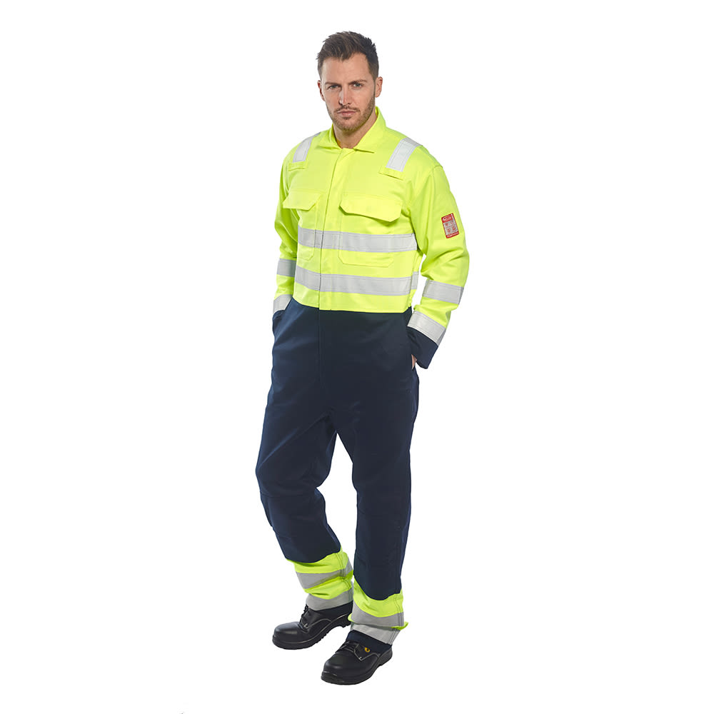 Salopeta Bizweld Hi-Vis antistatica ofera toate beneficiile materialului ignifug cu protectie sporita Hi-Vis si antistatica.
