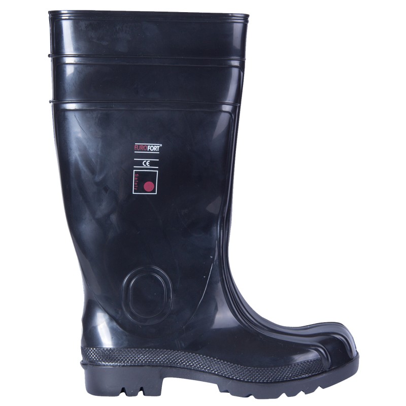 Cizme de protectie Eurofort pentru Vara S5 SRA, cu bombeu otel realizati din amestec special de PVC și cauciuc nitrilic. Atât partea superioară, cât și talpa sunt rezistente la uleiuri minerale, hidrocarburi și grăsimi ce indeplinesc cerintele standardului EN ISO 20345. Căptușeală din poliester rezistent la transpirație și abraziune.