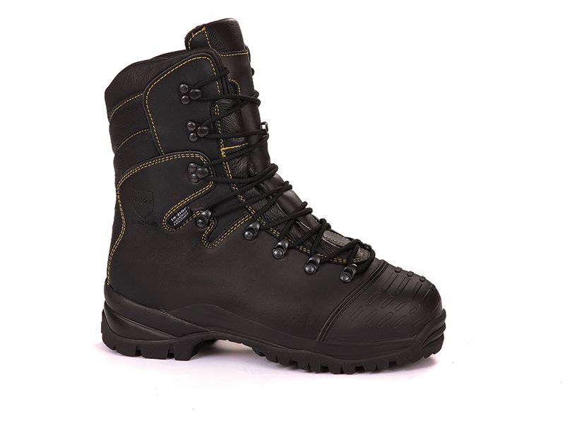 Ghete de vițel, piele WRU grain cu grosimea de 2,0-2,2 mm, cizmă cu inserție anti-tăietură realizată din material textil de înaltă rezistență. Inserție din cauciuc antiabraziv pe vârful piciorului.