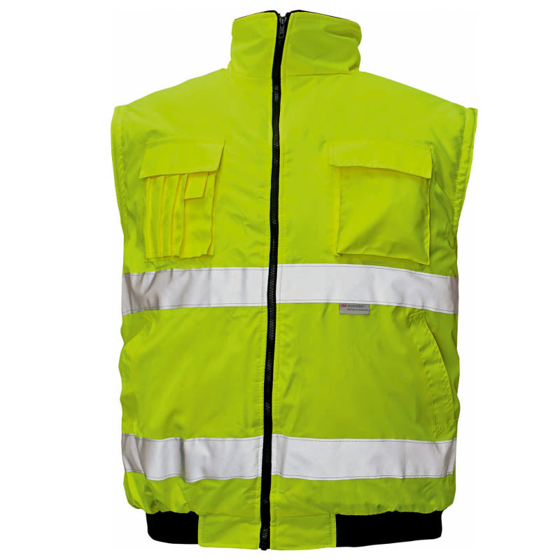 Jachetă Hi-Vis 2 în 1 cu benzi reflectorizante, mâneci detașabile și vestă care poate fi purtată separat cusături lipite, benzi reflectorizante 3M, impermeabilitate clasa 3 și respirabilitate clasa 1 în conformitate cu standardul EN 343 Poliester / Pelicula PU.