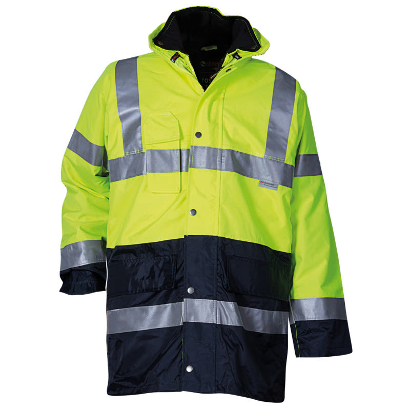 Jachetă "Hi-Vis" 3 în 1 cu dungi reflectorizante, bluză de vânt superioară detașabilă și purtabilă separat, jachetă interioară și vestă, glugă în guler, cusături lipite, impermeabil, manșete interioare tricotate, dungi reflectorizante 3M. Jachetă exterioară: 100% poliester cu acoperire PU. Căptușeală: 100% poliester. Jachetă interioară: 100% poliester cu strat PU combinat cu 65% poliester, 35% bumbac PĂSTRAT: 100% poliester căptușeală: 65% poliester / 35% bumbac.