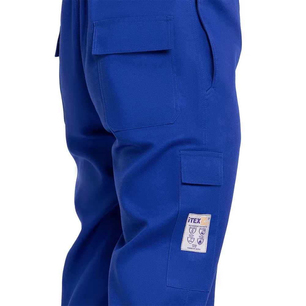 Pantalonii de protecție cu pieptar iTEX Design model TEXFB11 sunt realizați în România din țesături ignifuge, antistatice și antichimice având un gramaj aproximativ 240-260 gr/mp2 potrivit pentru utilizarea All-Seasons și sunt certificați CE. Designul modern albastru asimetric transforma paradigma echipamentelor de lucru clasice. Pantalonii TEXFB11 au fost proiectați pentru a asigura siguranță și confort în medii de lucru solicitante și periculoase și sunt fabricati din cele mai avansate materiale de protecție. Fie că lucrezi în industria construcțiilor, în domeniul energetic sau în orice altă industrie expusă riscurilor, jachetele noastre îți oferă protecție optimă și funcționalitate superioară. Fiind certificate CE, ele îndeplinesc standardele europene de siguranță și calitate, asigurându-ți că echipamentul tău de protecție este conform cu normele în vigoare.