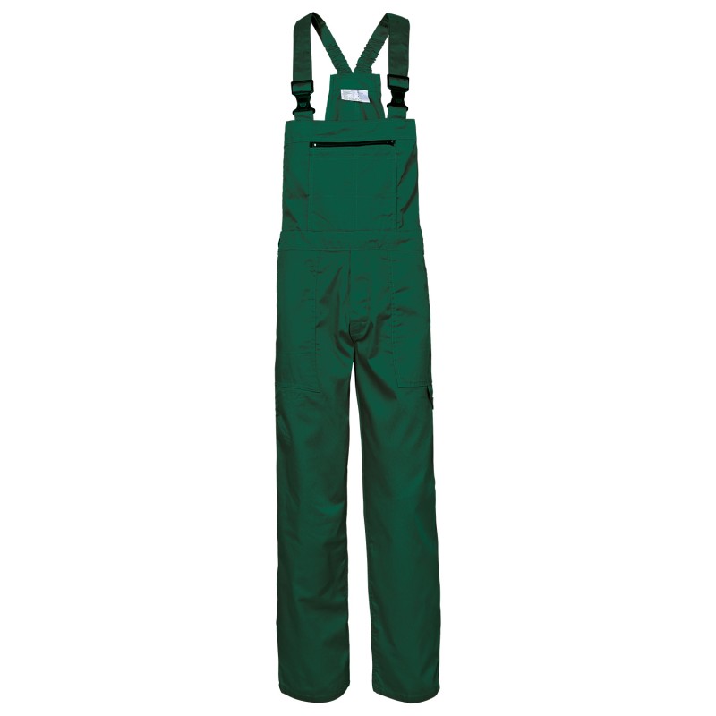 Pantaloni cu bretele de lucru clasici, cu un buzunar la piept cu fermoar, două buzunare laterale și curele reglabile. Bumbac / Poliester.