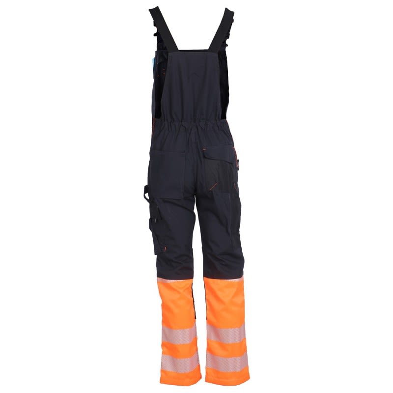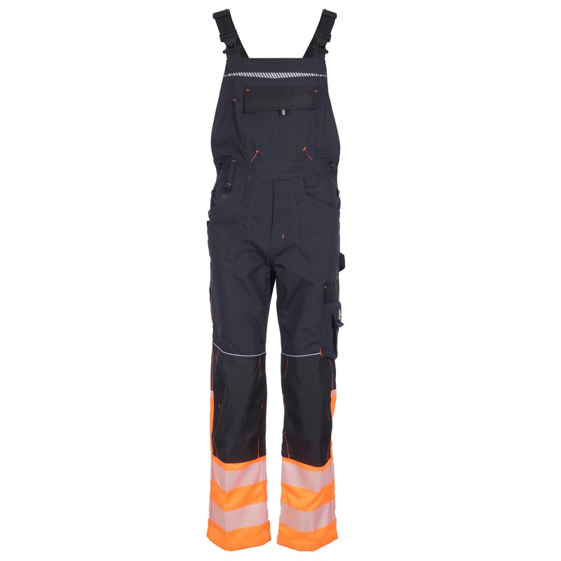 Pantaloni cu bretele de lucru cu buzunare multifuncționale și genunchi întăriți, benzi reflectorizante. Bumbac / Poliester / Pelicula PU.
