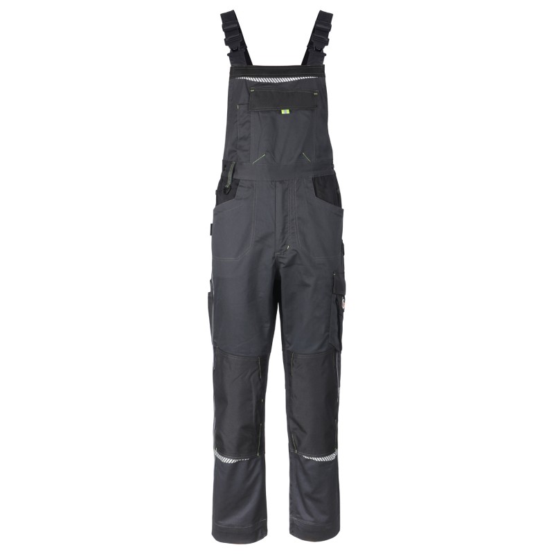 Pantaloni cu bretele de lucru cu buzunare multifuncționale și genunchi întăriți. Bumbac / Poliester / Spandex / Pelicula PU.