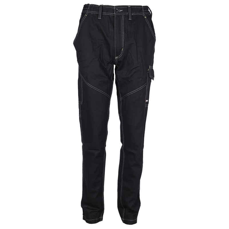 Pantaloni unisex pentru toate anotimpurile, cu elastic lateral și bucle de centură în talie. Închidere cu fermoar cu buton din plastic, două buzunare frontale clasice, un buzunar lateral LOCK SYSTEM, un buzunar pentru metru, două buzunare spate, unul deschis și unul cu clapetă și Velcro, cusături triple pe între picioare și în interiorul gambei. Inserții și cusături contrastante, dungi reflex pe buzunarul din spate, cusături triple pe partea interioară a piciorului. Bumbac.