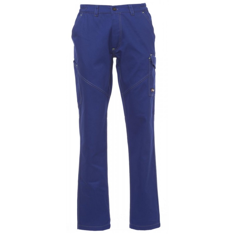 Pantaloni unisex elastici în toate anotimpurile, cu elastic lateral și bucle de centură în talie, închidere cu fermoar cu buton de plastic, două buzunare frontale clasice, un buzunar lateral stâng cu LOCK SYSTEM, un buzunar drept pentru bandă de măsură, două buzunare spate, unul cu clapetă și unul deschis cu clapetă dublă cu Velcro, cusături triple pe între picioare și în interiorul gambei. Cusături și inserții contrastante, dungi reflectorizante pe buzunarul din spate, cusături triple cusute. Bumbac / Elastan.