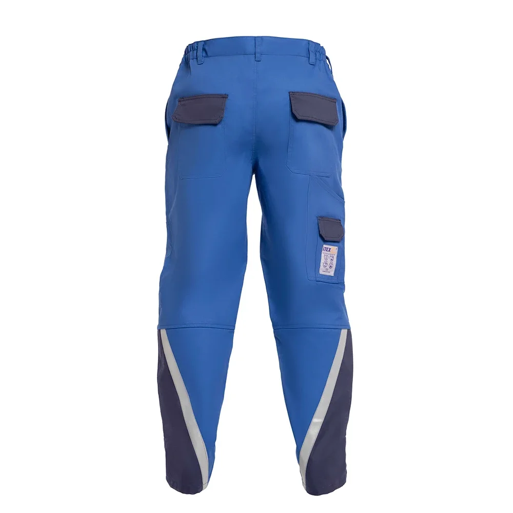 Pantalonii în talie de protecție iTEX Design model TEXFB11 sunt realizați în România din țesături ignifuge, antistatice și antichimice având un gramaj aproximativ 240-260 gr/mp2 potrivit pentru utilizarea All-Seasons și sunt certificați CE. Designul modern bicolor, combinație albastru cu bleumarin transforma paradigma echipamentelor de lucru clasice. Pantalonii TEXFB11 au fost proiectați pentru a asigura siguranță și confort în medii de lucru solicitante și periculoase și sunt fabricati din cele mai avansate materiale de protecție. Fie că lucrezi în industria construcțiilor, în domeniul energetic sau în orice altă industrie expusă riscurilor, jachetele noastre îți oferă protecție optimă și funcționalitate superioară. Fiind certificate CE, ele îndeplinesc standardele europene de siguranță și calitate, asigurându-ți că echipamentul tău de protecție este conform cu normele în vigoare.