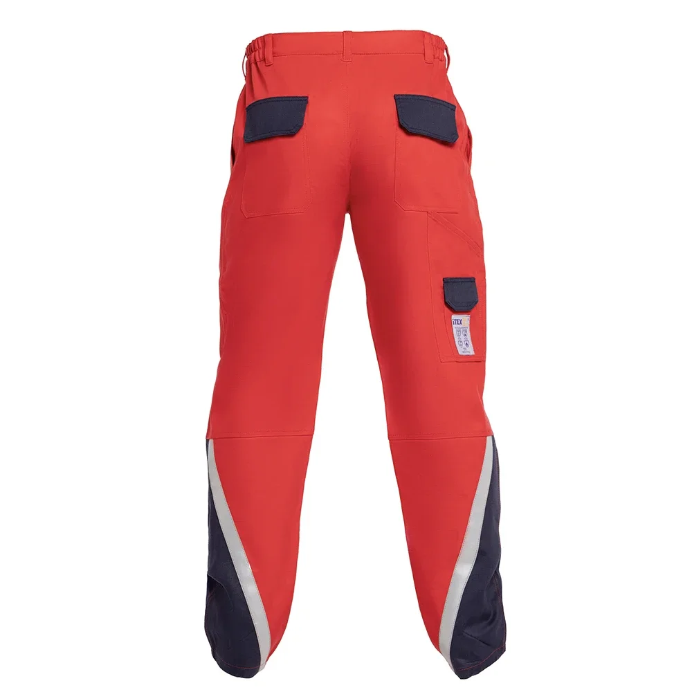 Pantalonii în talie de protecție iTEX Design model TEXFB11 sunt realizați în România din țesături ignifuge, antistatice și antichimice având un gramaj aproximativ 240-260 gr/mp2 potrivit pentru utilizarea All-Seasons și sunt certificați CE. Designul modern bicolor, combinație rosu cu bleumarin transforma paradigma echipamentelor de lucru clasice. Pantalonii TEXFB11 au fost proiectați pentru a asigura siguranță și confort în medii de lucru solicitante și periculoase și sunt fabricati din cele mai avansate materiale de protecție. Fie că lucrezi în industria construcțiilor, în domeniul energetic sau în orice altă industrie expusă riscurilor, jachetele noastre îți oferă protecție optimă și funcționalitate superioară. Fiind certificate CE, ele îndeplinesc standardele europene de siguranță și calitate, asigurându-ți că echipamentul tău de protecție este conform cu normele în vigoare.