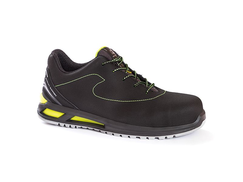 Încălțăminte joasă, piele WRU anti-zgârieturi la spate, grosime 1,8-2,0 mm. Căptușeală din țesătură foarte rezistentă la transpirație și la abraziune. Zonă întărită în zona călcâiului STABILITY SUPPORT din PU. Limbă moale, căptușită și căptușită. ÎNCĂLȚĂMINTE COMPLET LIPSITĂ DE METAL