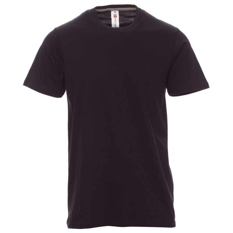 Tricou bărbătesc cu mânecă scurtă, cu gât de tip crew neck, cu bandă de gât cu nervuri din amestec de spandex de 1,5 cm, cu cusătură superioară în partea din față, bandă de întărire contrastantă de la umăr la umăr vizibilă pe gulerul interior, cusături elastice, design tubular. Bumbac.