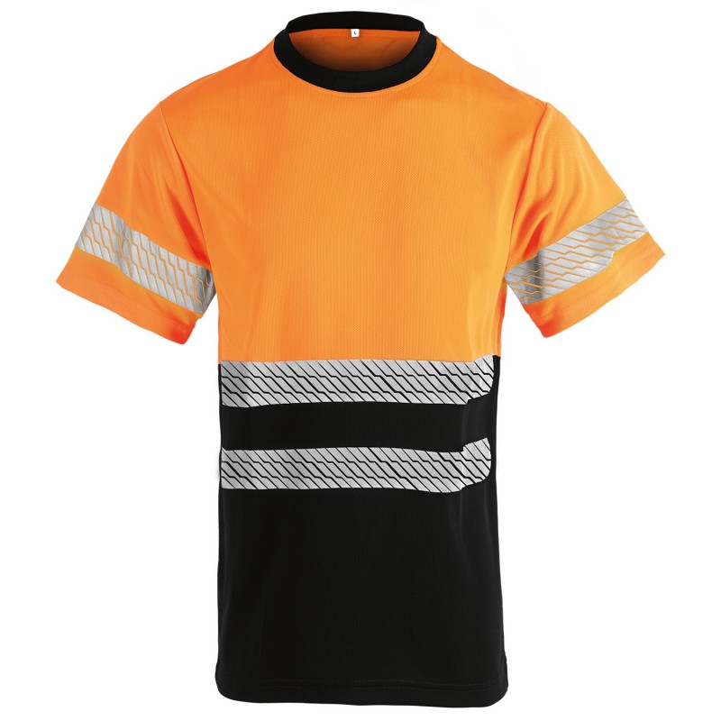 Tricou reflectorizant bicolor cu benzi reflectorizante imprimate.